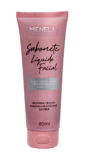 Sabonete Líquido para o rosto MENELA, além de higienizar e reduzir a oleosidade da pele, contém em sua formulação: Ácido Hialurônico, Pró-Vitamina B5 e Aloe Vera, que auxiliam no preenchimento e hidratação da pele.